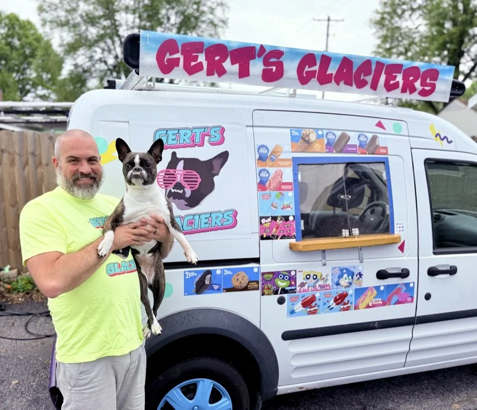If the ice cream truck doesn’t seem to be enough, we also have sweaters made with Gert’s picture on it every year for Christmas. She is truly a light in our life and everyone else’s who meets her. Her forever young and wild heart is what inspired our 90’s time capsule: Gert’s Glaciers Ice Cream Truck!